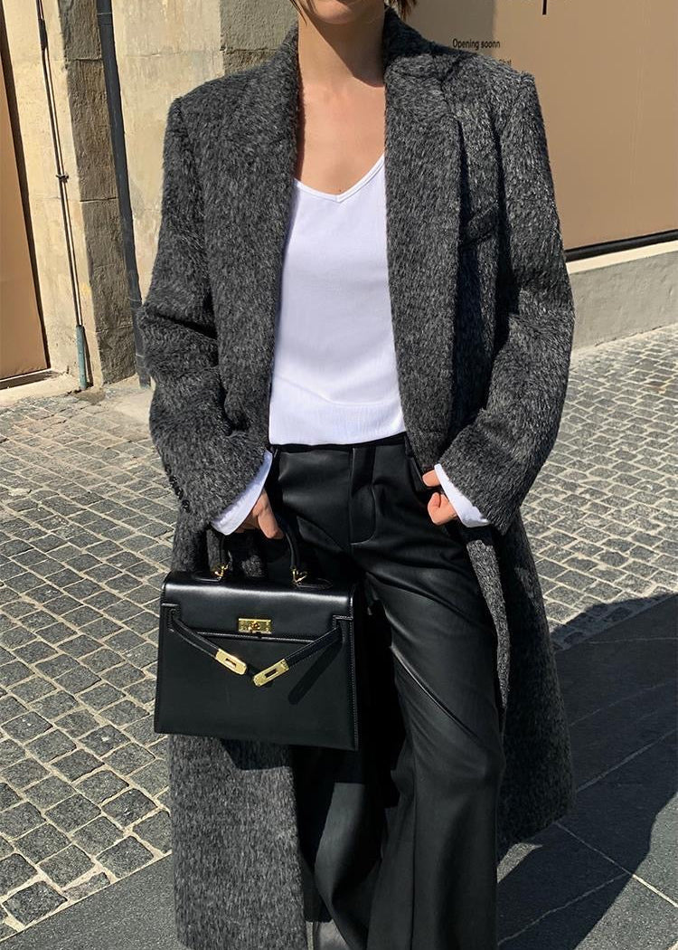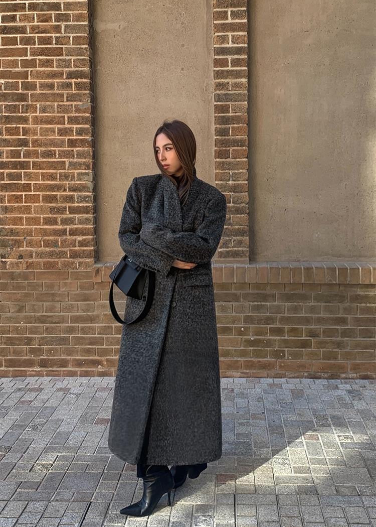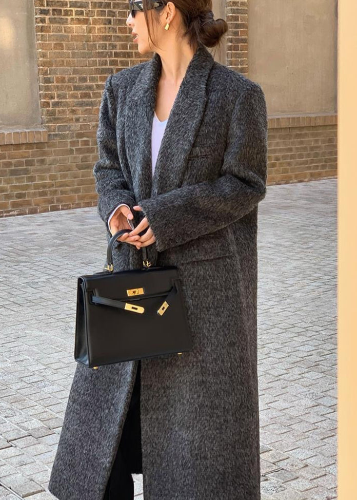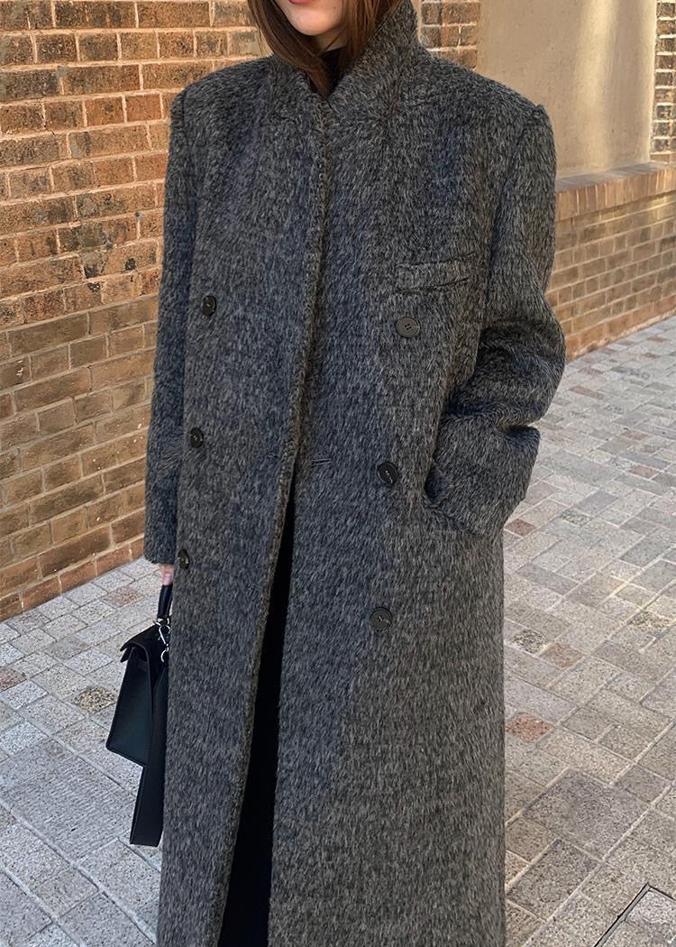 Abrigo largo de mezcla de lana con carbón vegetal – Diseño clásico sobredimensionado