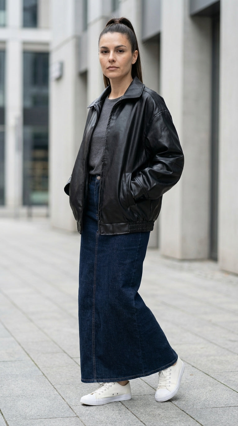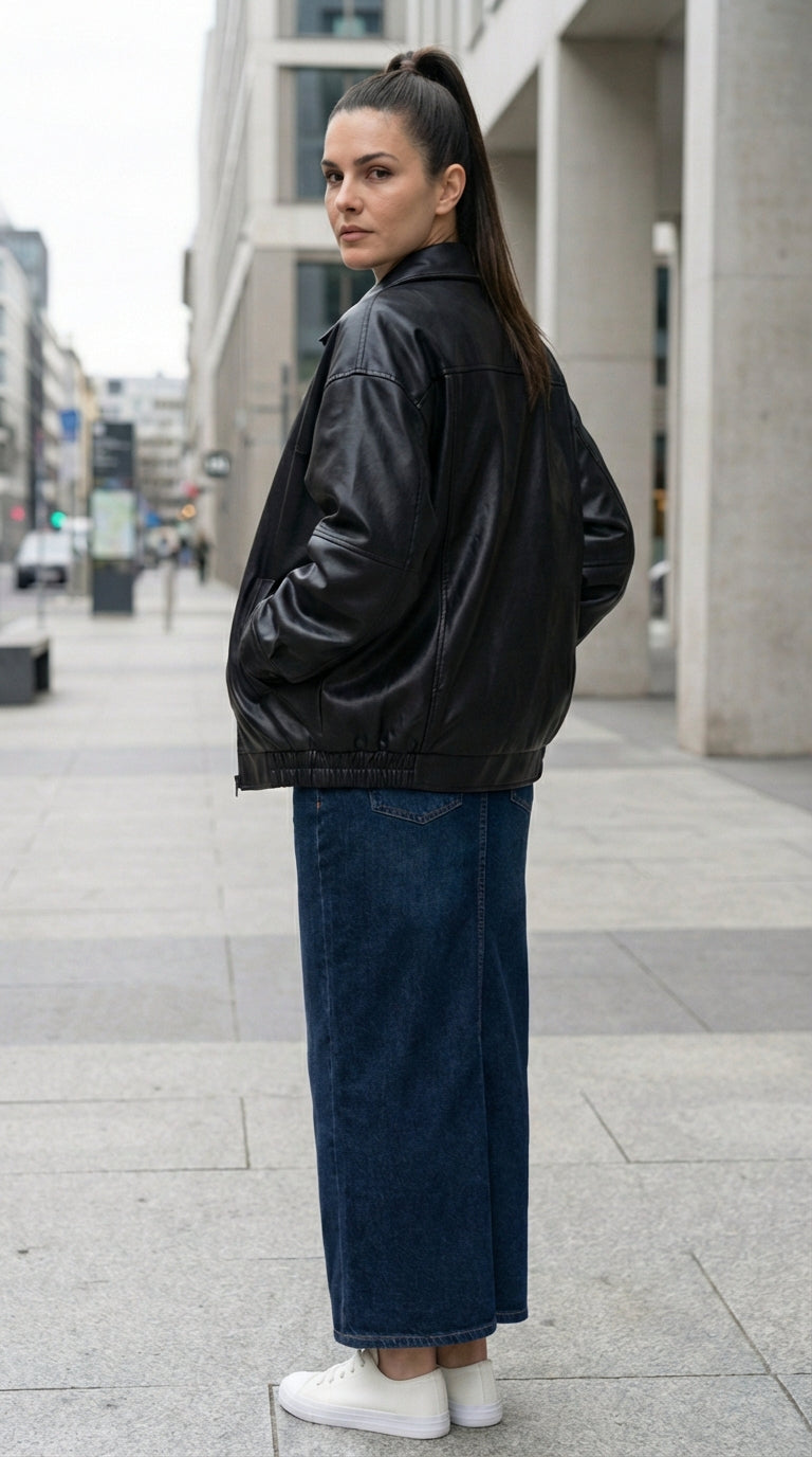 Chaqueta de cuero de motorista sobredimensionada – declaración de inspiración vintage