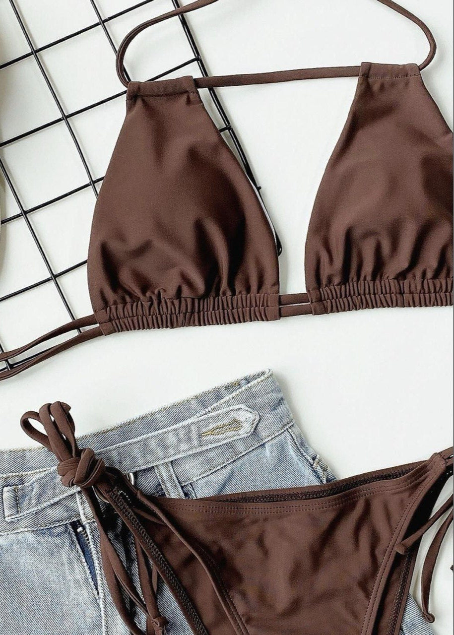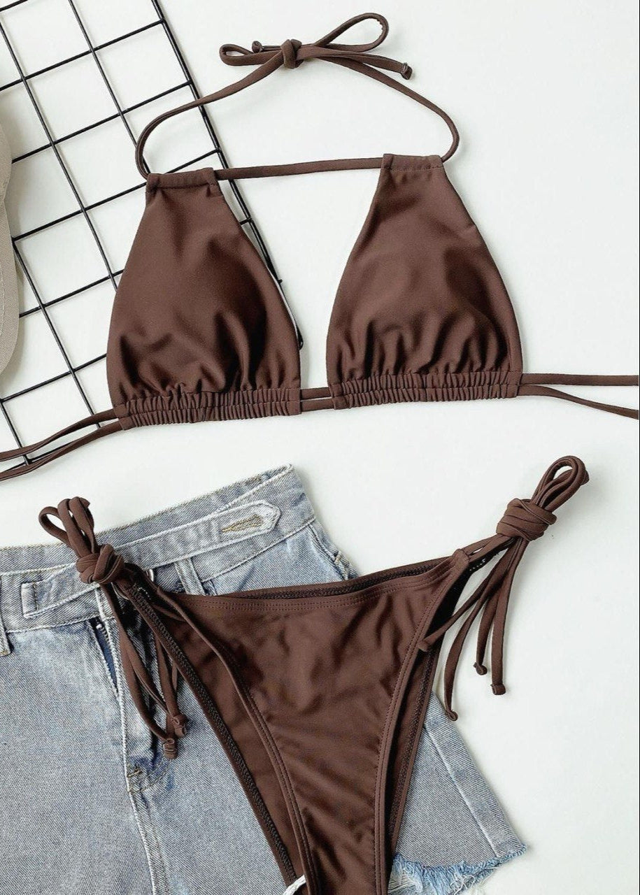 Mocha Strings - Traje de baño minimalista de una pieza con triángulo