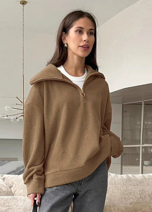 Le pull-over à col zippé en polaire Cozy offre un confort ultime et un style sans effort. Conçu avec une coupe décontractée et fabriqué en tissu polaire doux, ce pull est parfait pour des sorties décontractées ou pour se détendre à la maison. Le détail du zip quart et le col haut offrent polyvalence et une touche de modernité. Associez-le avec un jean ou des leggings pour un look quotidien chaud et stylé.