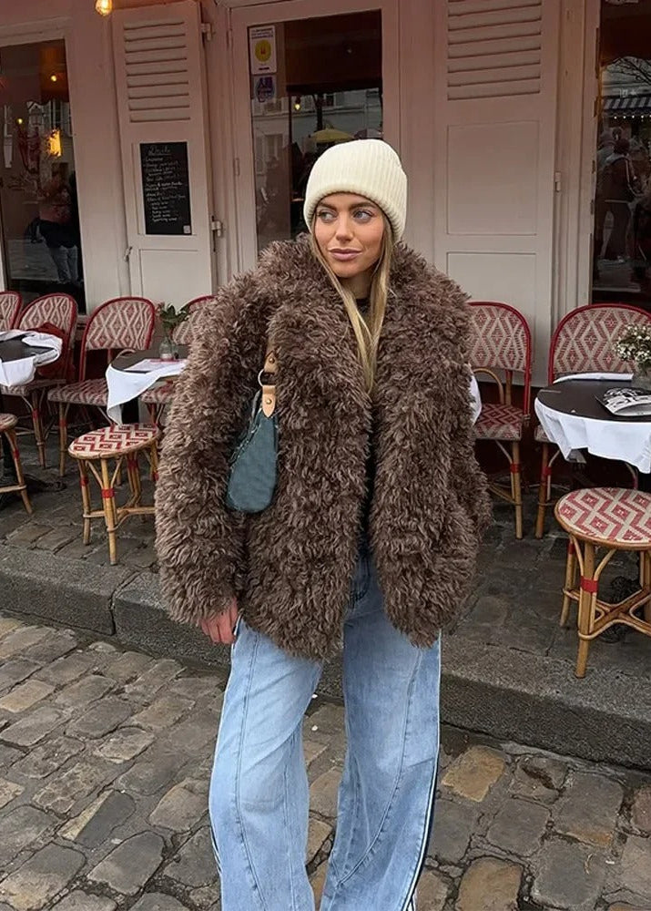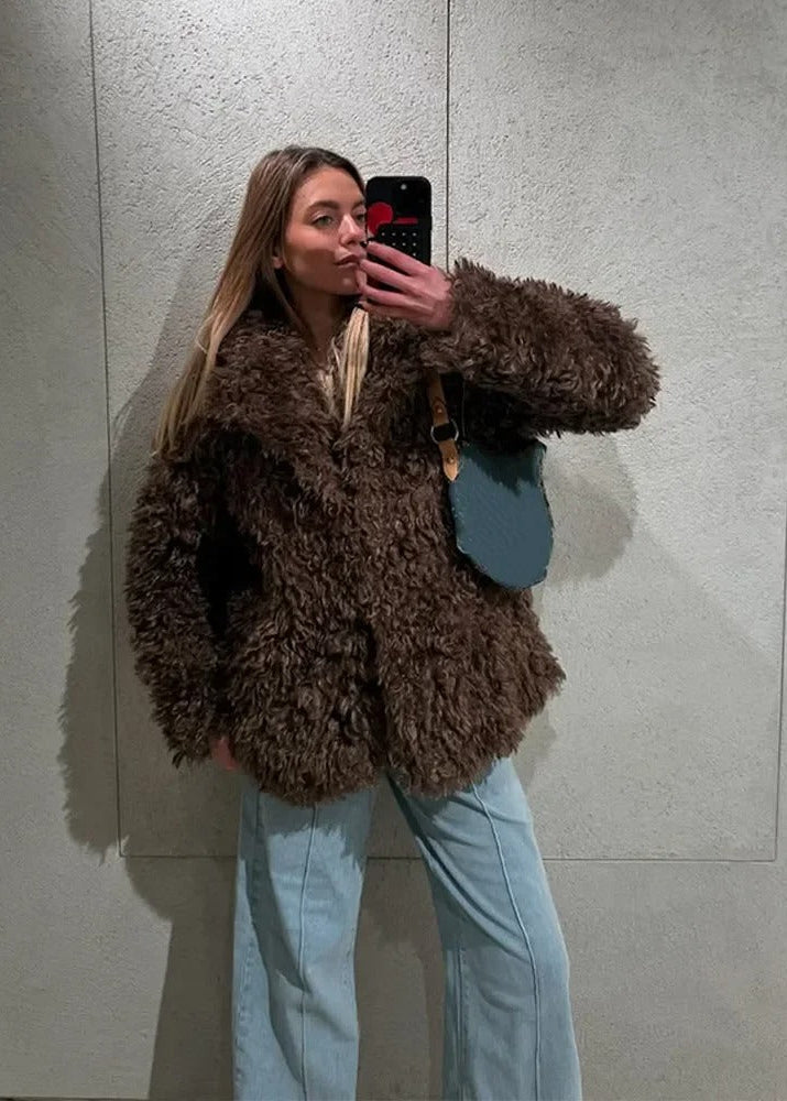 Urban Plush Curl Faux Fur Coat – Oversized Textured Outerwear